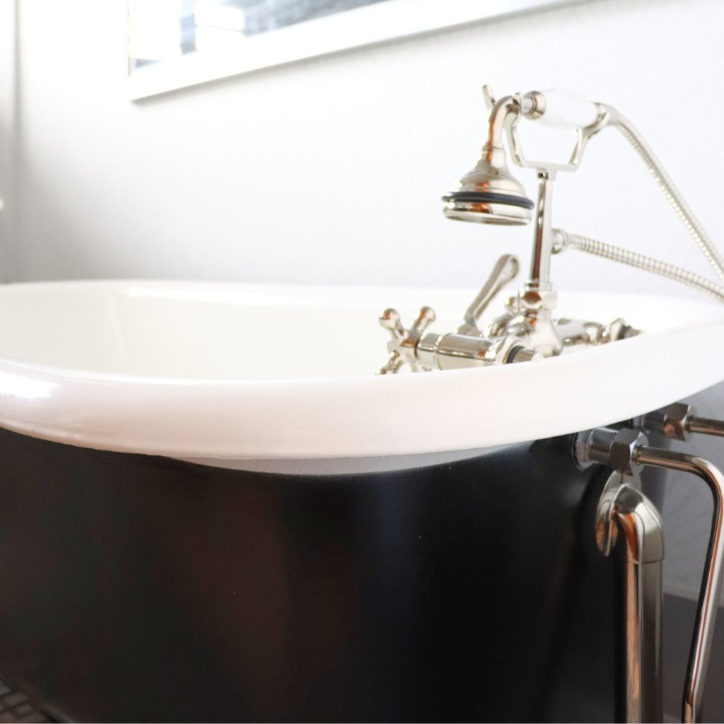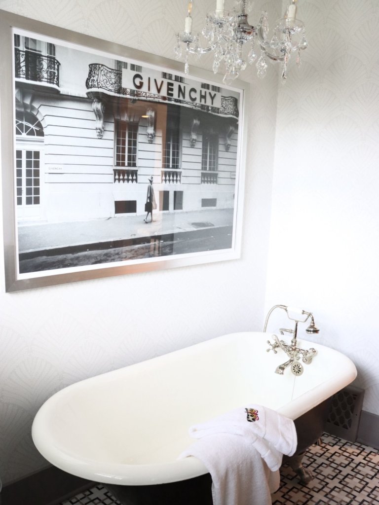 Le Dolce Couture Retreat is a powder bath featuring a beautifully refurbished classic clawfoot tub as its centerpiece. Custom finishes and materials were selected, including hand-made towels and curtains inspired by designer craftsmanship to reflect the client’s love for detail.